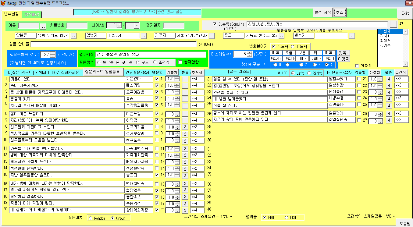 * 실행은 yoyang.exe -> 임상연구 -> 문항40 척도 -> "factg" 선택