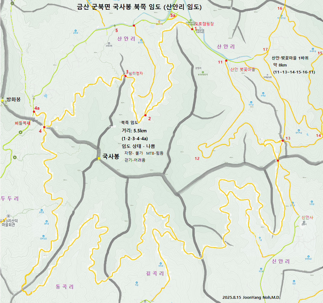 (참고)국사봉 남쪽 임도(동곡리,갈곡리,신안리)는 MTB-길로 알려져 있어 임도 상태는 좋을 것 같다. 추후 답사 예정
