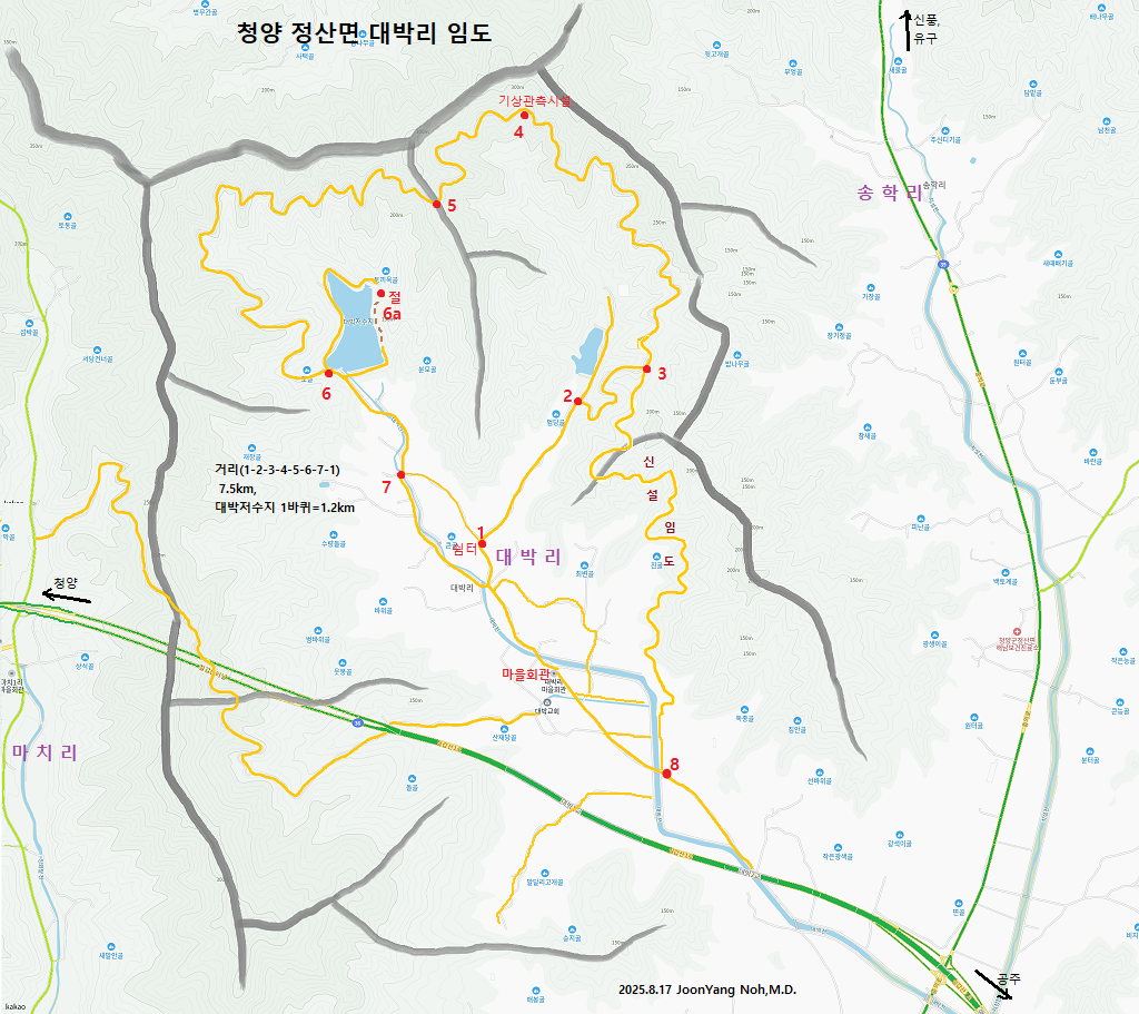 임도 1바퀴: 7.5km(1-2-3-4-5-6-7-1),