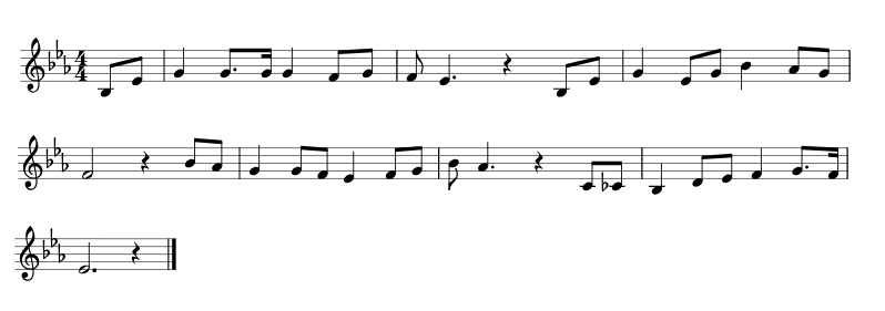 아래 2개의 악보의 노래는 누구나 들으면 바로 알 수 있는 노래이다. 악기의 도움을 받는다면 그 악기의 음계(Scale)을 읽힌 다음 멜로디를 박자에 맞추서 연주해 보면 바로 알아 맞출 수 있다.