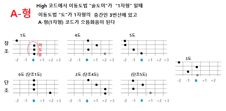 으로 화음의 모양을 인지한 후 관련된 4,5도의 화음의 모양을 연상하면서 반주하면 된다.