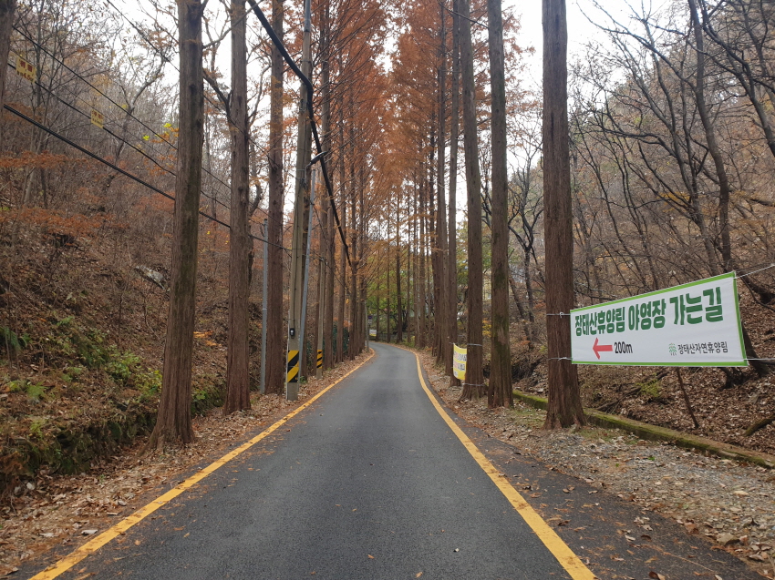 (거리) 약 11.5km (도로,임도,휴양림 주변 숲길, 산길 등)