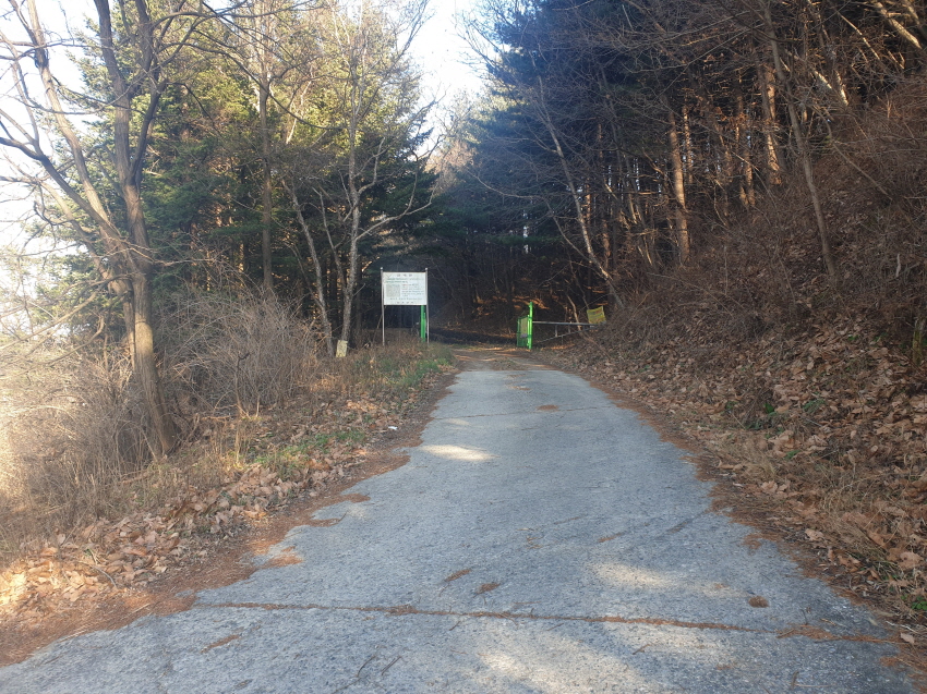 문티고개가 보이는 도로/임도 접점
