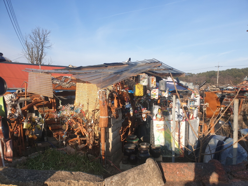 거현2구 볼만한 집, 다양한 소재를 엮고 붙여서 작품을 만들어 전시?하고 있다