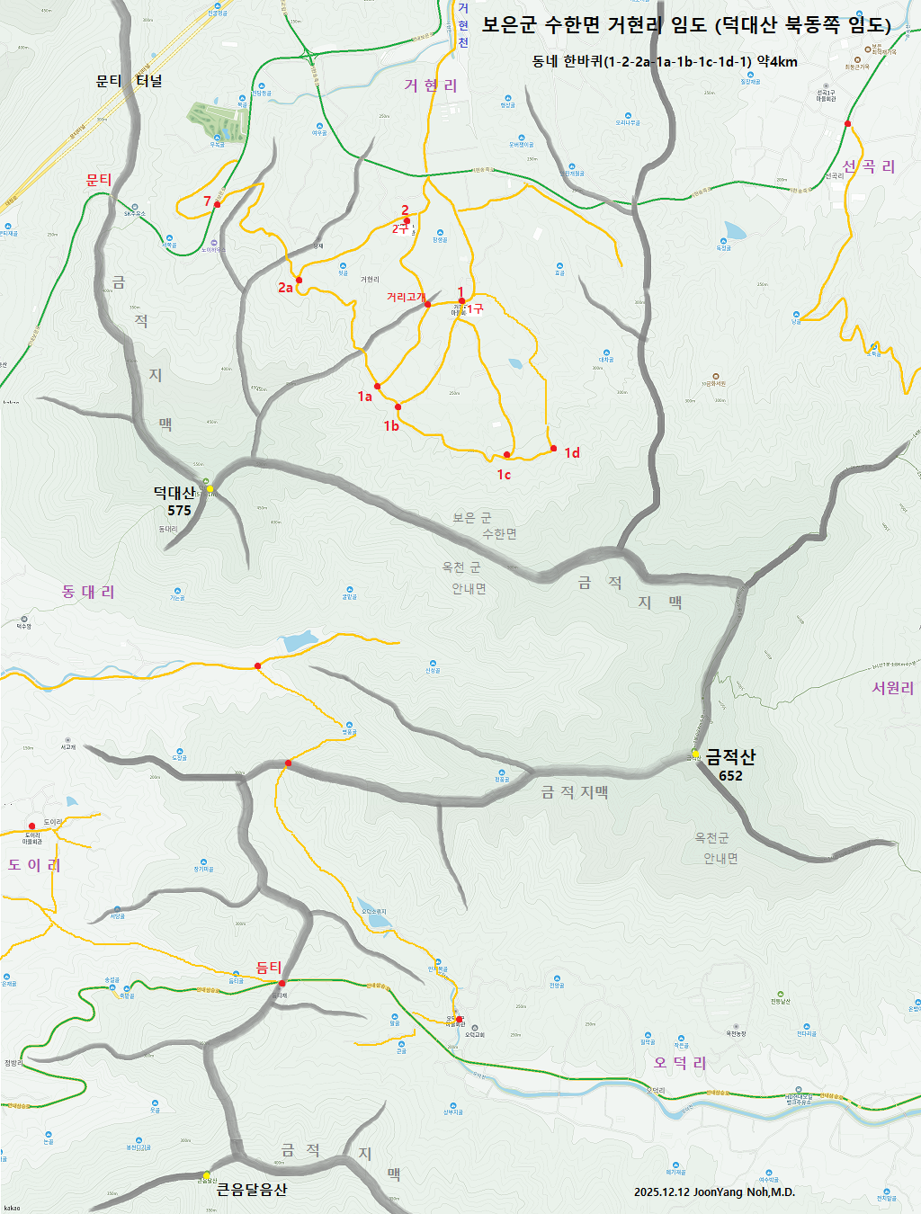 산행(걷기): 7 - 2a - 1a - 1b - 1c - 1d - 1(거현1구 마을회관) - 거리고개 - 2(거현2구 마을회관) - 2a - 7