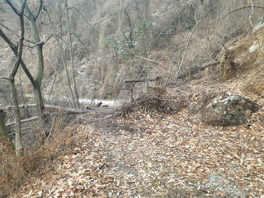 중간에 절개지 무너져 내린 곳
