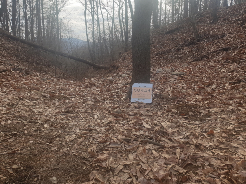 안건이 고개(한남금북정맥 고개): 여기서 직진하면 산길이 좋지 않아 진행하기 어려워