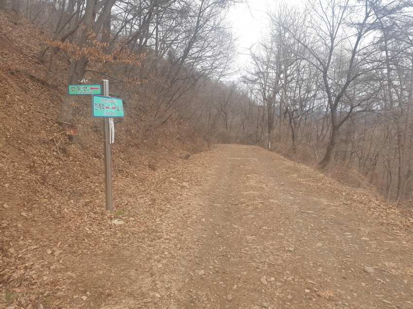 정맥 산길따라 선두산쪽으로 가다 한계리 끝 마을 임도향해 하산(길이 없으나 조금만 하산하면 임도가 나옴)