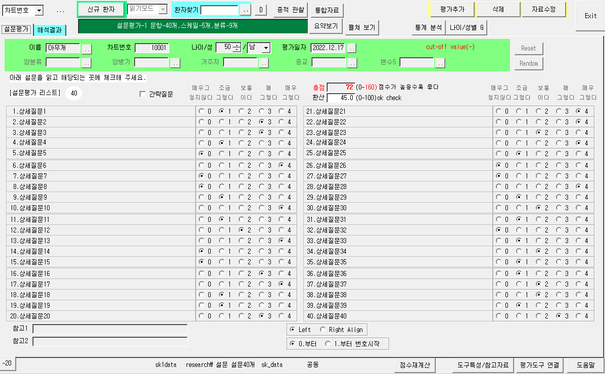 암 환자(생존자) 1차 진료 - 마무리 하면서...- 결론, SW공개/설치, 제언, 미래 의사의 역할1. 암 생존자 증가/요구 - 암환자 1차 진료 필요 2. 암환자 평가 및 치료시에 - 표준화된 평가도구들을 활용하고 암 주변환경 - “염산당순면” by 기능의학 - “소방동원해” by TLC - 식이/운동/수면/스트레스/사회관계 by 암대사: ivnt, ivc, phyto, offlabels 3. 부작용 관리 4. 연구 설계, 자료 구축, 통합/분석 5. 심신의학적 접근 방법 필요 6. 개인별 다양한 자료를 관리/분석위해 SW-도움필요SW 공개 영역환자 자료 및 검사 자료 DB 관리 공부노트(7과목) - 빈 노트(분류) 기초자료 소개 - 일부 및 리스트 의학 평..